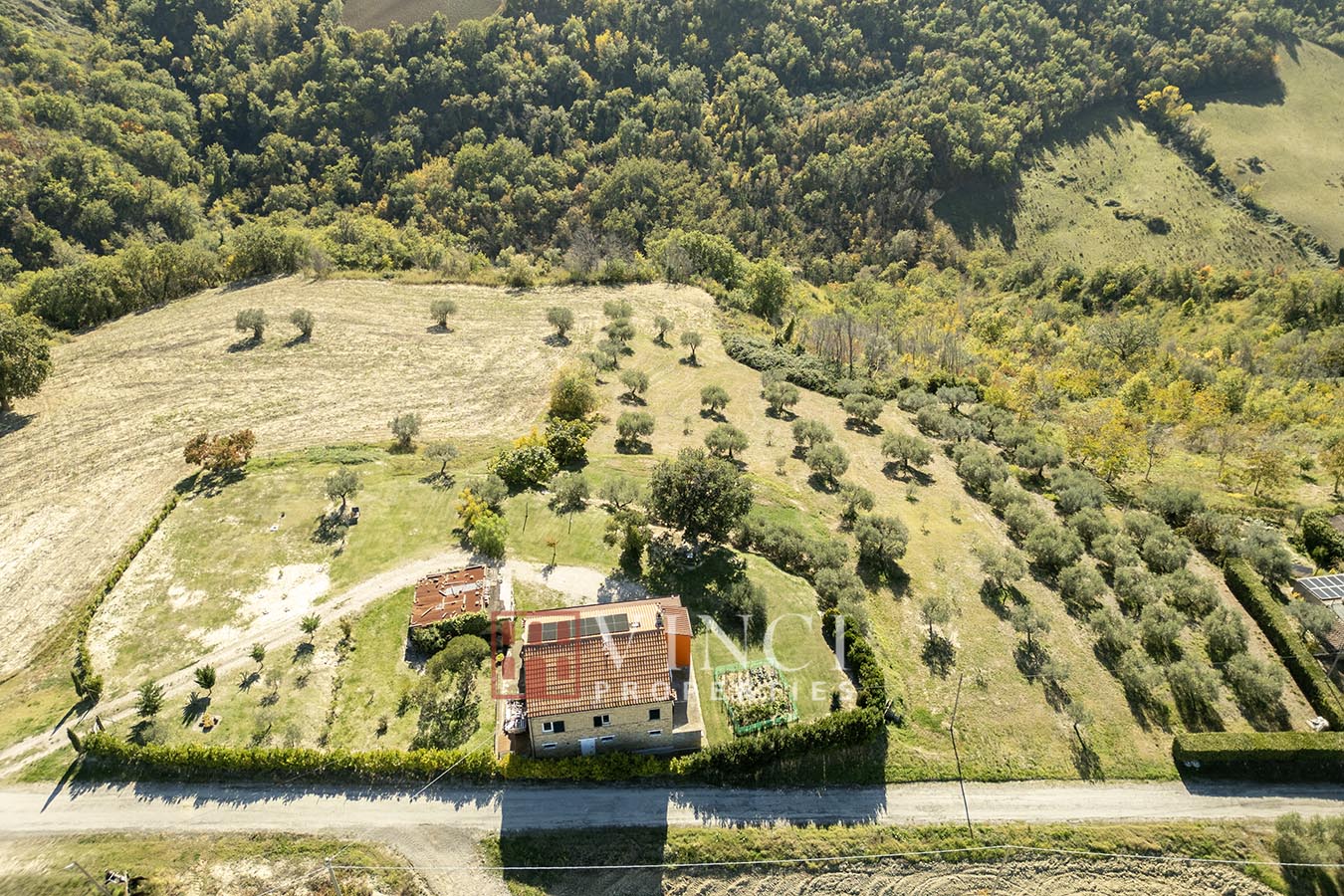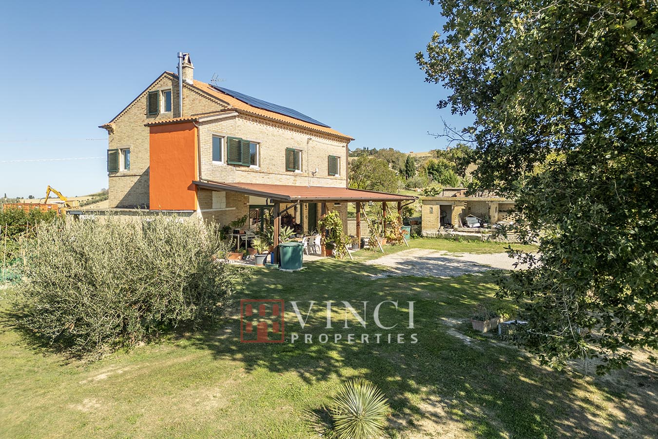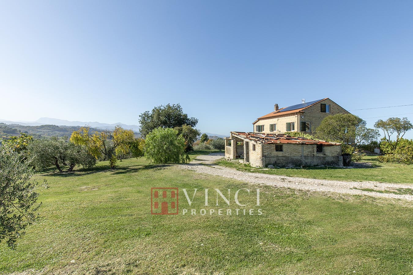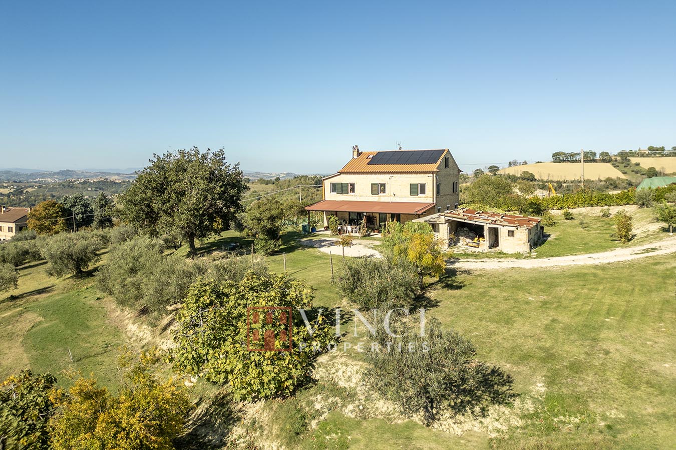 Renovated classic Marche farmhouse with walls in bricks, courtyard - olive grove, photovoltaic system (6kw) with storage batteries (8kw), detached outbuilding, agricultural land and amazing view of the Sibillini Mountains