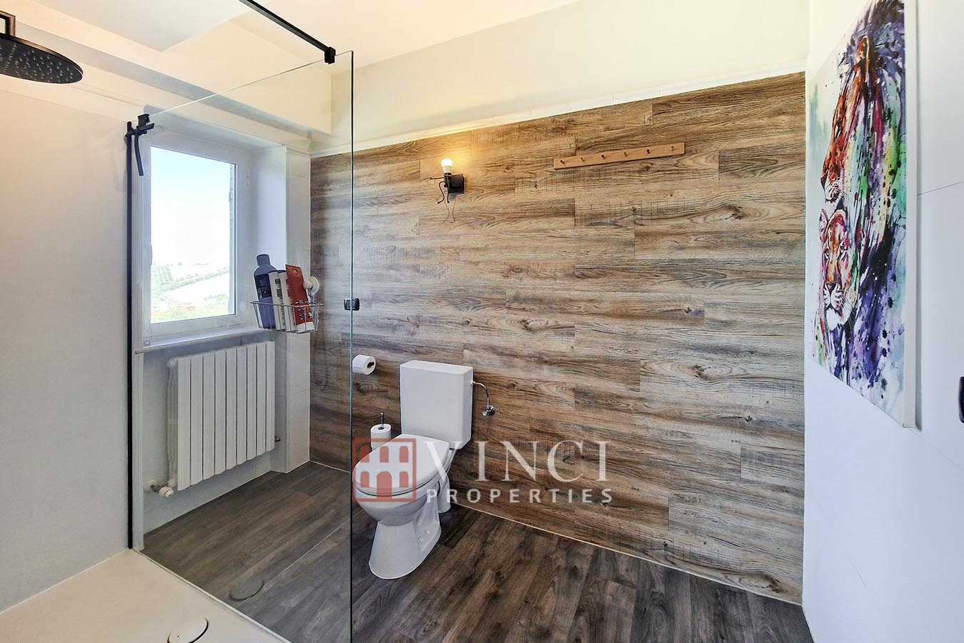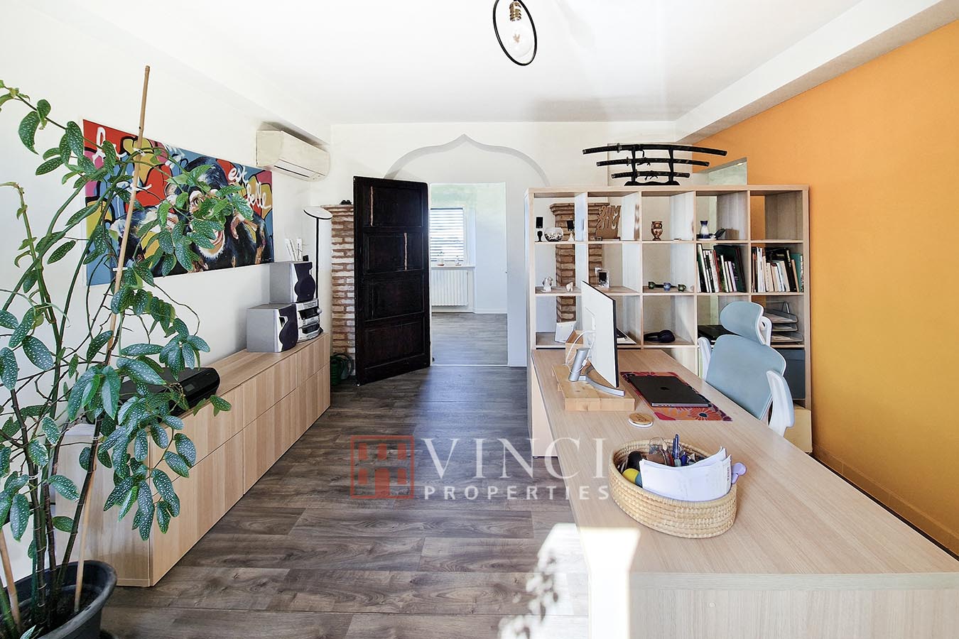 - The internal staircase leads to the first floor of about 105 square meters, where there are two very large double bedrooms, a spacious bathroom, a study area, and a laundry room.