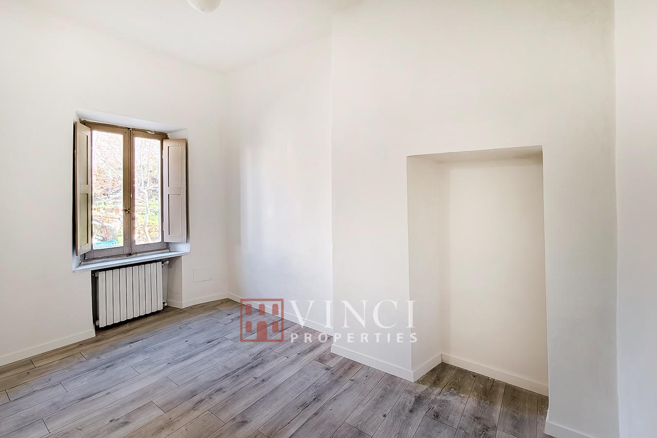 La ristrutturazione ha valorizzato gli spazi con parquet in tutte le stanze, bagni moderni e finiture curate. L’esposizione garantisce ottima luminosità durante tutto l’arco della giornata, mentre dalle finestre si gode di una piacevole vista sui giardini e sulla campagna circostante.