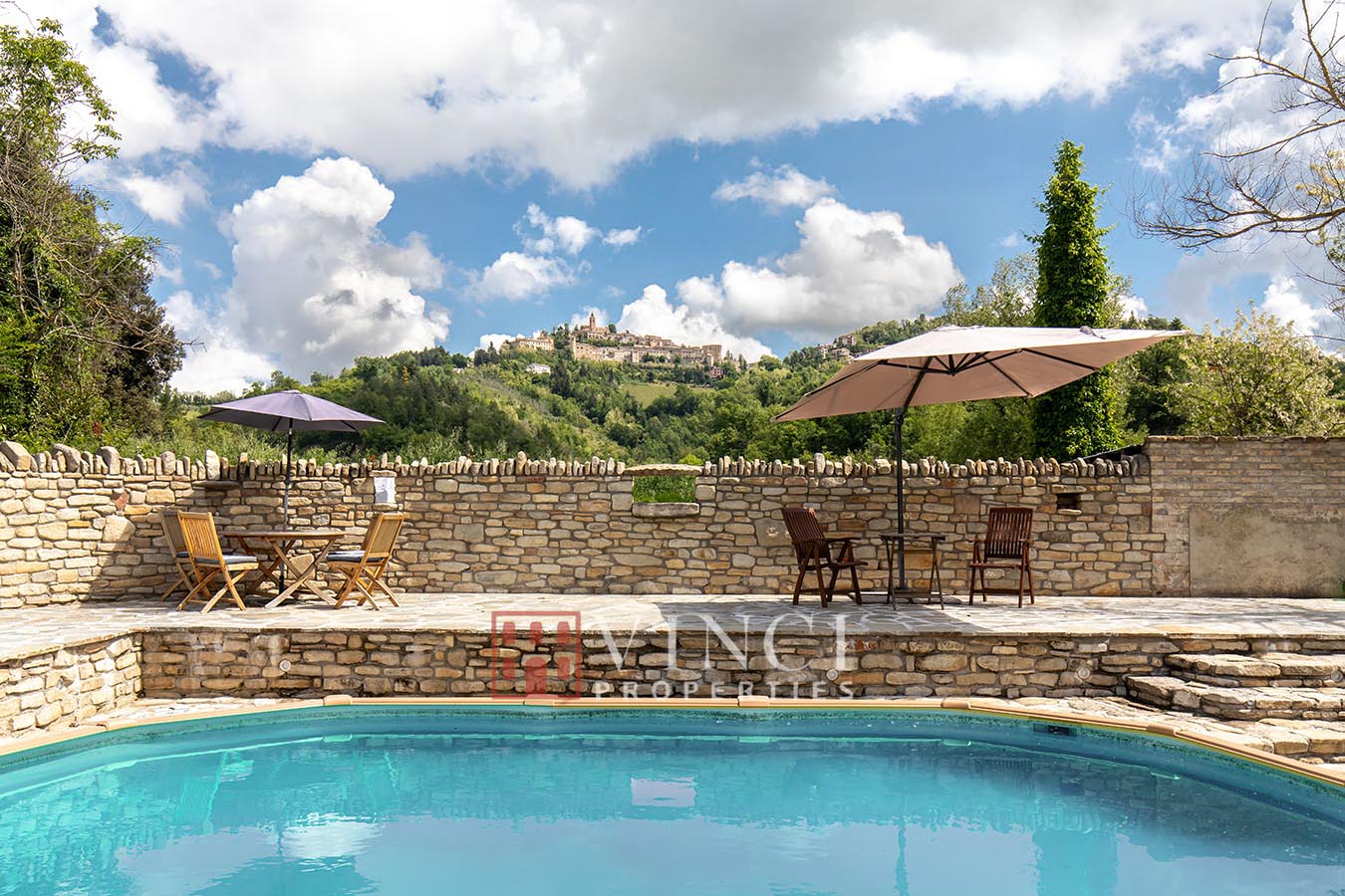 La proprietà si trova appena fuori da una strada in buone condizioni a pochi km dal villaggio medievale collinare di Montelparo, nella provincia di Fermo. Situata in circa 1 ettaro di giardino e prato, i due edifici molto confortevoli e meticolosamente mantenuti offrono: